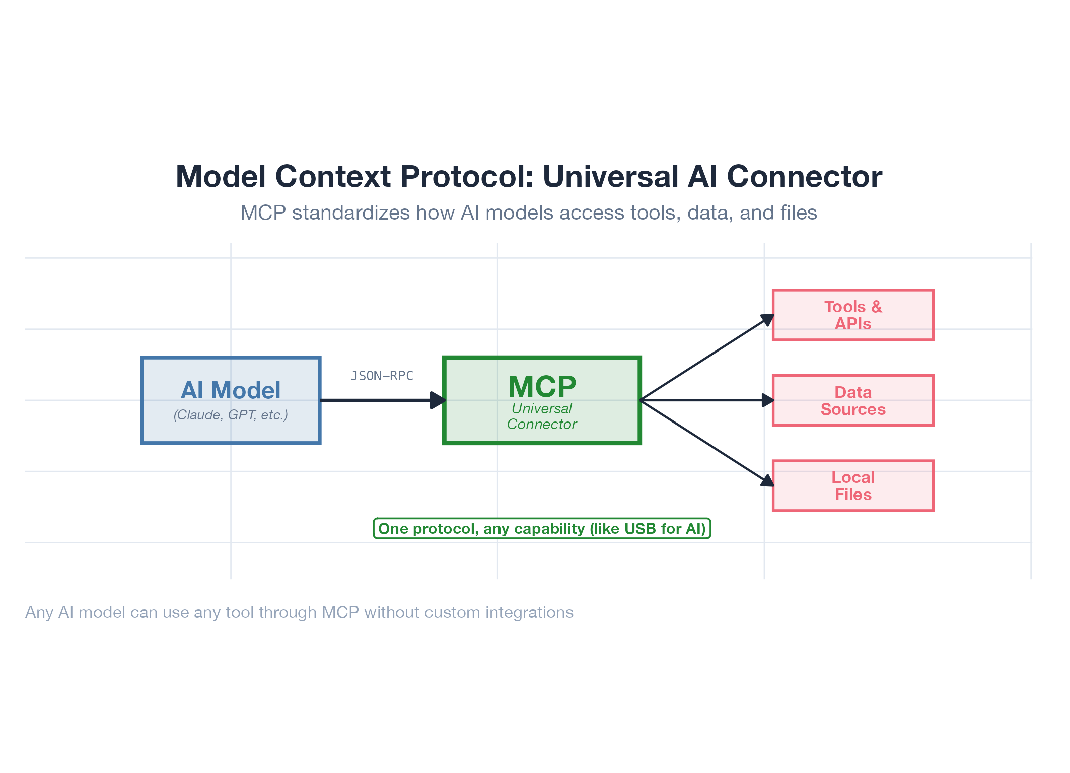 Anthropic's standard for giving AI models tools and data. Like USB, but for AI connections.