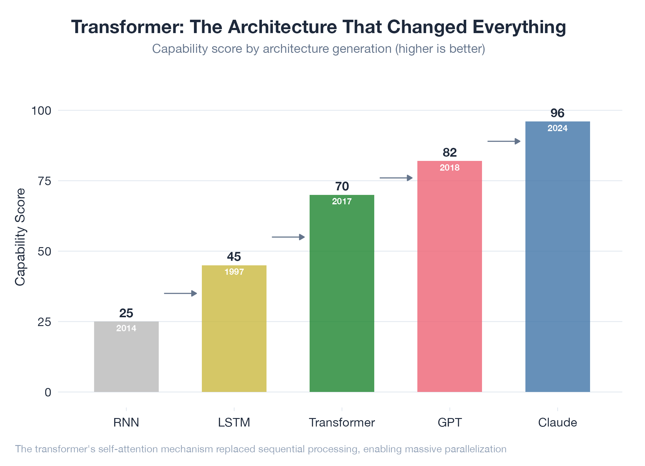 The neural network architecture behind GPT, Claude, and every modern LLM. Built on attention.
