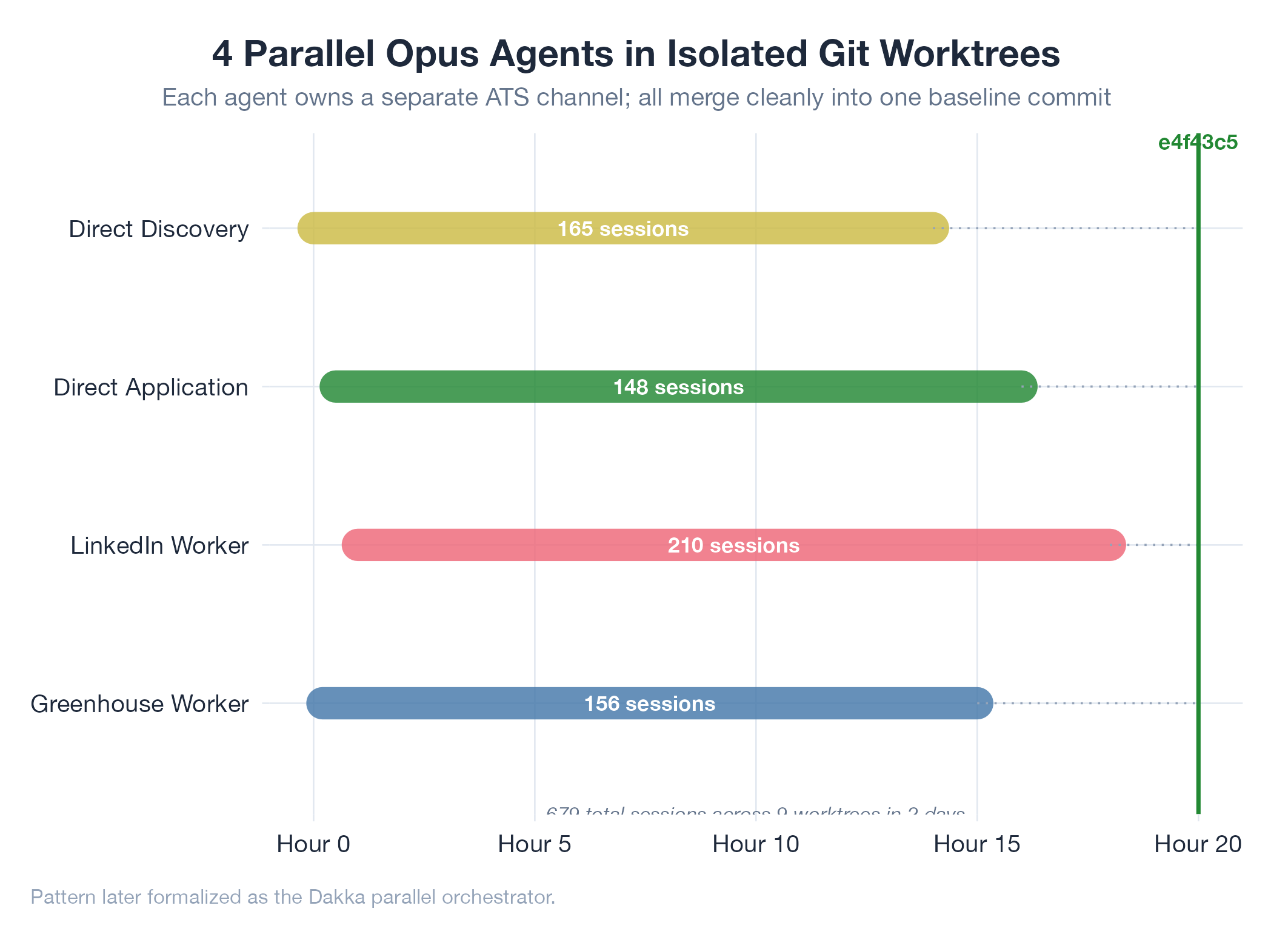 679 sessions (522 main + 157 worktree) in 2 days. Agents successfully parallelized adapter work. Merged into baseline co