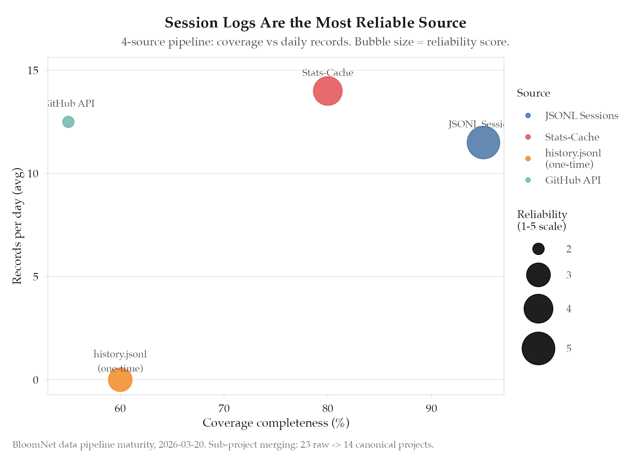 Pipeline operational with all 4 sources. Sub-project merging eliminates double-counting. Proportional distribution preve